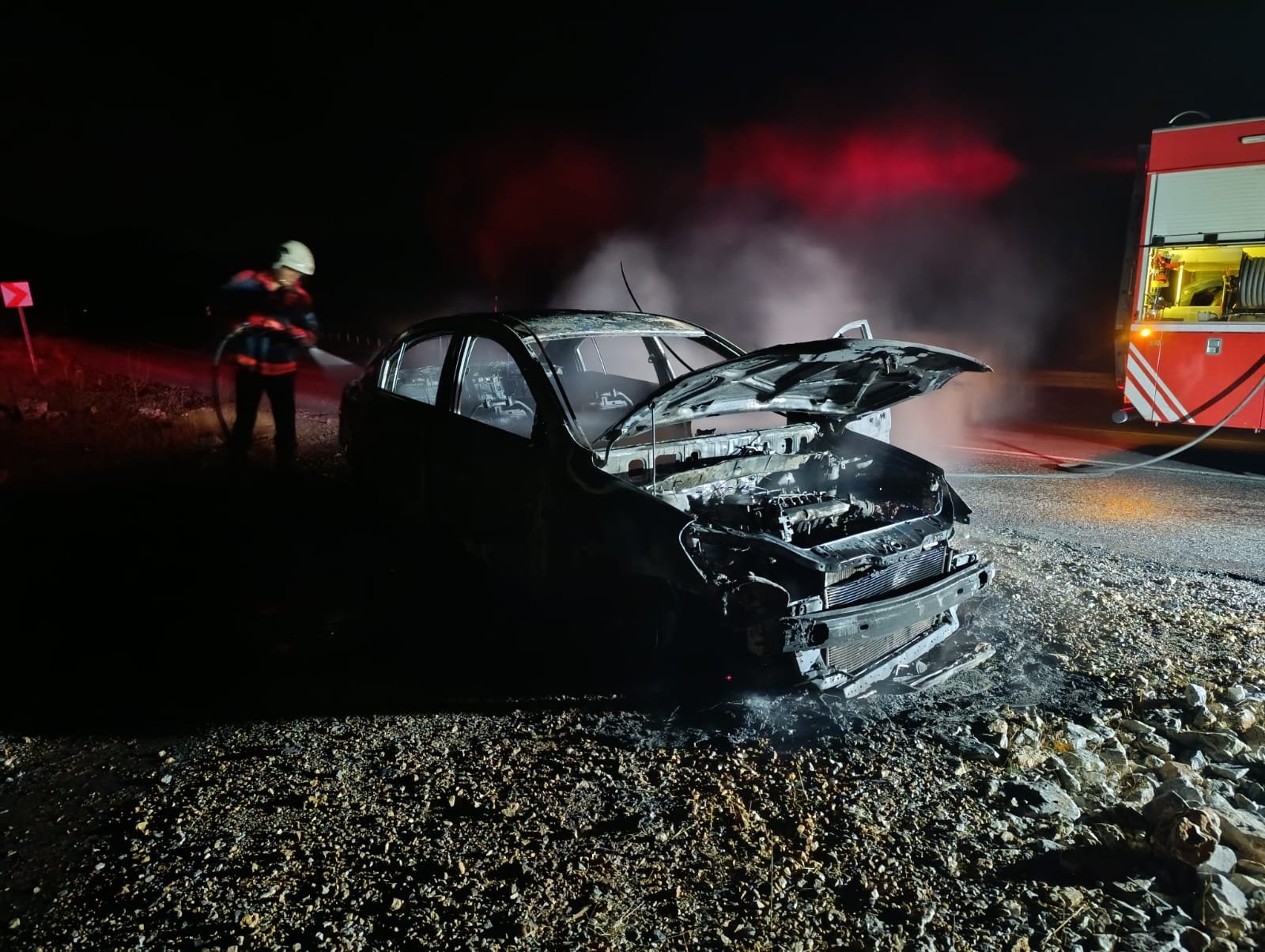 Gece yarısı araç yangını korkuya yol açtı