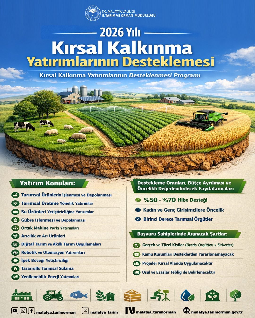 Dijital tarım, yapay zekâ, robotik ve otomasyon uygulamaları, akıllı tarım çözümleriyle birlikte hibe programına dahil edildi. Ayrıca tarımsal ürünlerin işlenmesi ve depolanması, su ürünleri yetiştiriciliği, arıcılık, ortak makine parkları, tasarruflu sulama sistemleri ve yenilenebilir enerji yatırımları da desteklenecek alanlar arasında yer aldı.