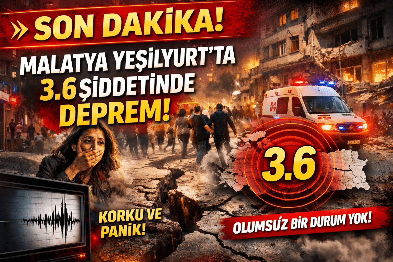 Malatya’nın Yeşilyurt ilçesinde bu akşam saat 20:43’te 3.6 büyüklüğünde deprem meydana geldi. AFAD verilerine göre merkez üssü Yeşilyurt olan deprem, kısa süreli korku ve paniğe neden oldu.